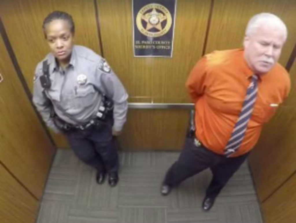 Deputy Reed can’t contain herself — she starts to dance alongside Deputy Scherb. These two make this iconic dance look almost effortless, and you can’t help but want to join in. These two stop for a few moments when their boss — Chief Officer Evans — steps onto the elevator, but once he reaches his floor and exits, it’s back to busting a move! It turns out that these two are not the only police officers looking to have a little fun — the party is literally just beginning!