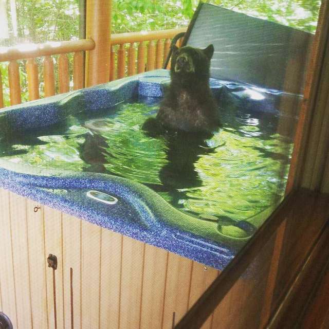 Couple Catches Bear Enjoying A Relaxing Soak In Their Hot TubBy Hilda Schulte / May 31, 2019 12. Relaxing thedodo.com Once the bear cub went inside the hot tub its whole face relaxed, close its eyes and enjoyed the warm water. It seemed like it needed this! Pages: 1 2 3 4 5 6 7 8 9 10 11 12 13 14 15 16 17 18 19 20