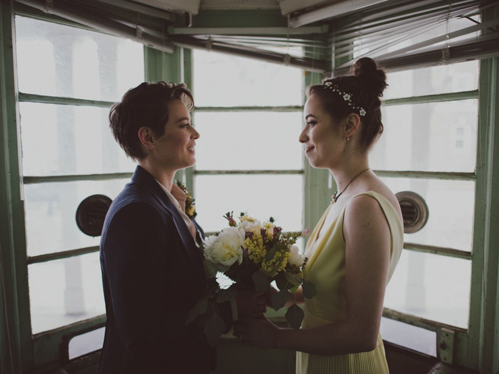 “Once they have been left to the elements, we can create our own stories to fill the halls that we explore,” Taylor said. Dasha shares her wife’s sense of poetry about the experience. “I feel very lucky to have a partner who has the same vision as I do, not only for our wedding but our life overall,” she said. This perfect couple had their perfect photoshoot.