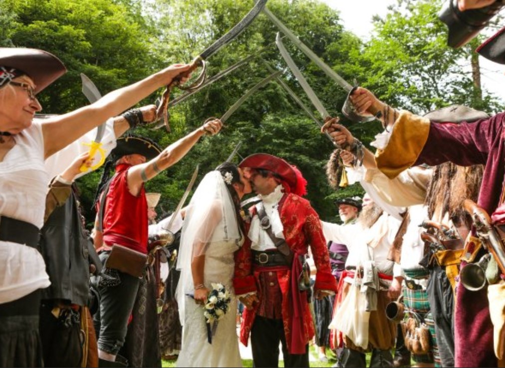 Redditor MiyaxKapugen recalls their neighbors’ wedding, which was pirate-themed, including a tall ship anchored in the harbor. The newlyweds met at a fencing class, so that was their dream wedding. Then, the shocked redditor saw this scene: