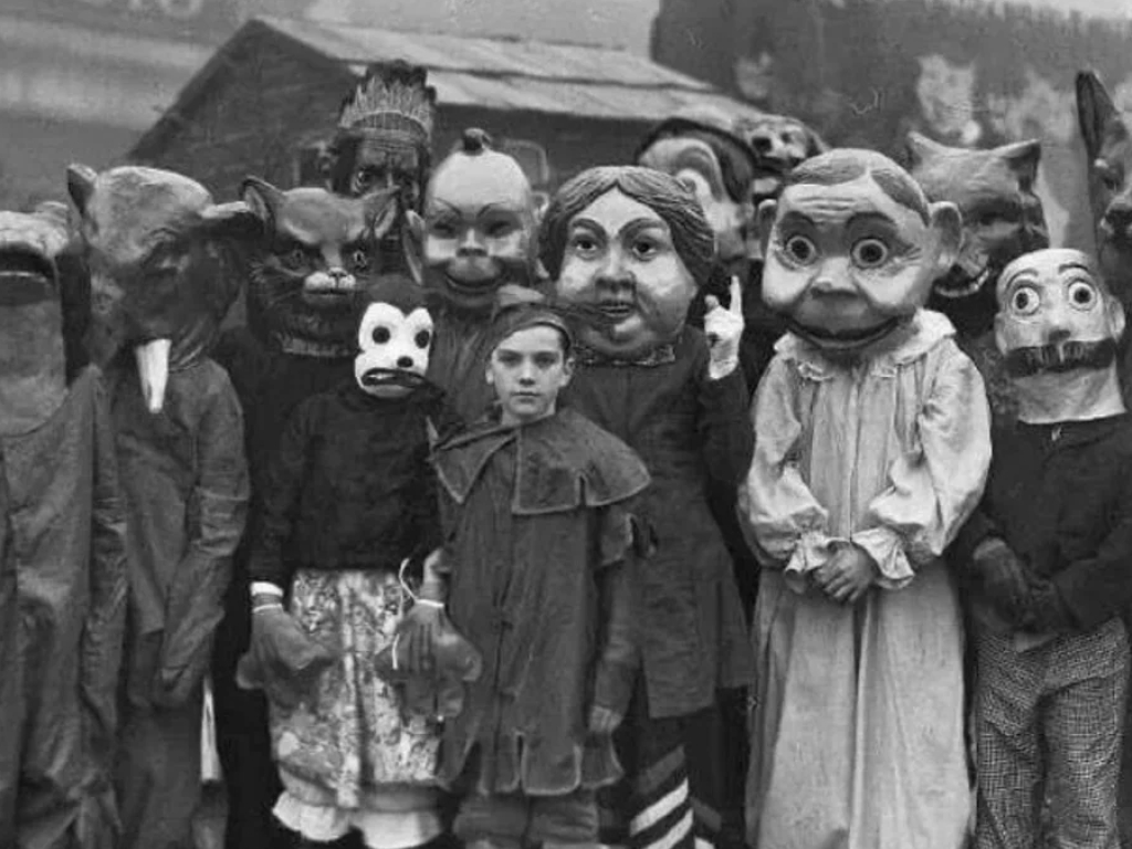 Let’s be honest: people in the past were way better at making creepy Halloween costumes. This photo, from approximately some time in the 1930s, shows off a collection of masks that would make modern children cry. For all that we like to think of modern generations being jaded and cynical, we’re nowhere near as tough as the kids who grew up thinking these masks were normal.