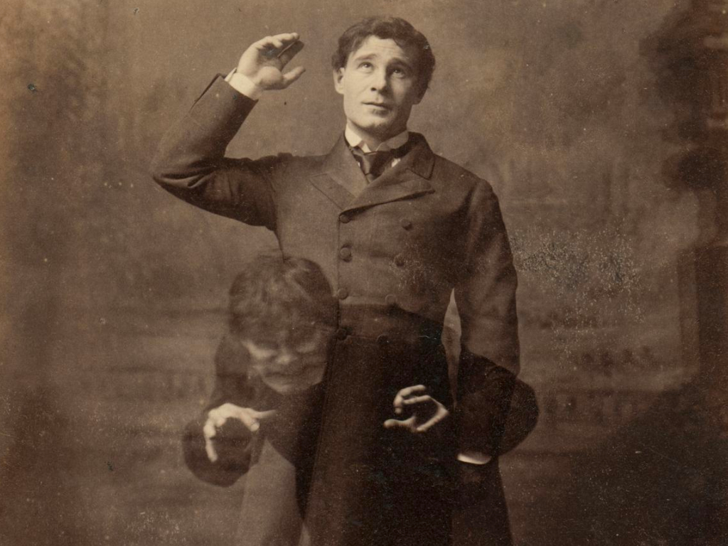 If this photo looks like something out of a horror story, then it has succeeded at its purpose. This trick photograph from 1888 shows Richard Mansfield posing as both Dr. Jekyll and Mr. Hyde from the popular horror story by Robert Louis Stevenson. Mr. Hyde’s sinister form has been superimposed onto the picture by exposing the photograph twice. Consider this an early example of a cosplay photoshoot.