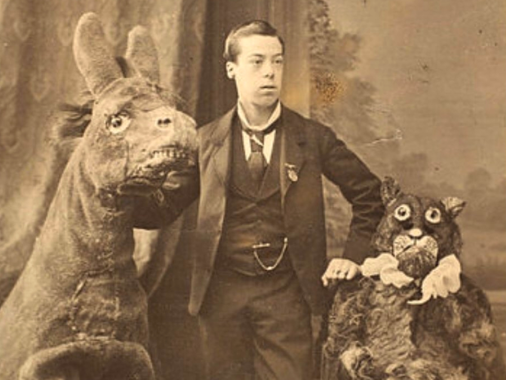 It only feels fair to show off how Lauri looked when he wasn’t dressed up in one of his abhorrent costumes. Of course, even when in human attire, his horrible outfits were never too far away – hence what looks like giant deflated horse and cat toys on either side of the great performer.