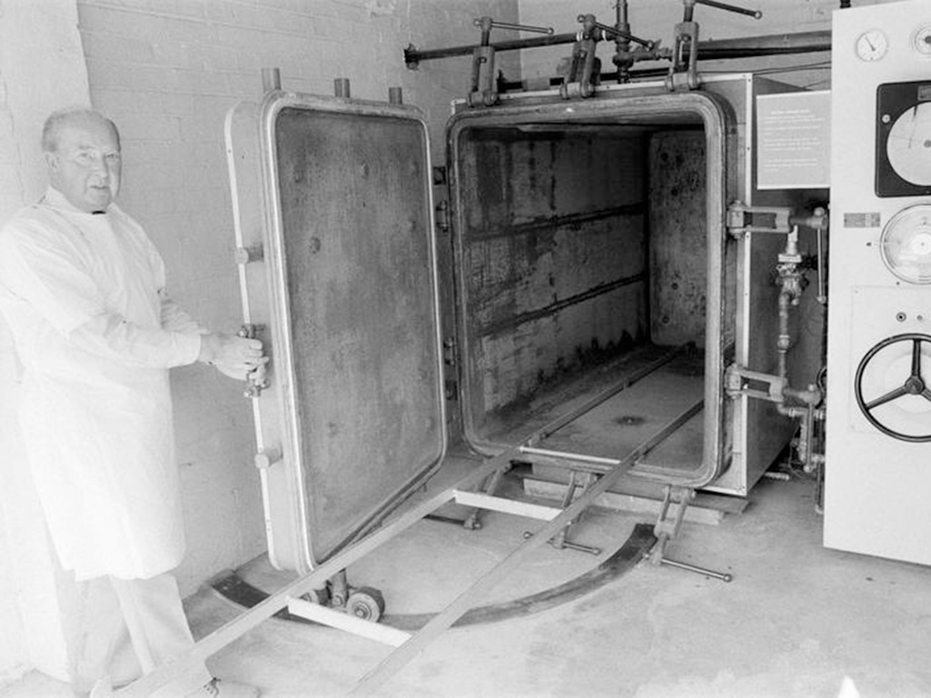 This photo might look like something out of the Twilight Zone, but it’s not as old as you probably think it is. This isolation tank, located at Catherine-de-Barnes Isolation Hospital, was made for patients suffering from smallpox in the early 20th century, and this photo of the tank itself was taken in 1983.