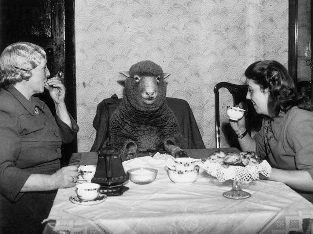 Because this photo isn’t creepy on its surface, you might expect there to be some kind of sinister hidden story behind the sheep sitting at the dinner table. But in reality, these are just two kind women who loved their dear black lamb Betty so much that they couldn’t stand to make her eat dinner in the stable with the rest of the animals.