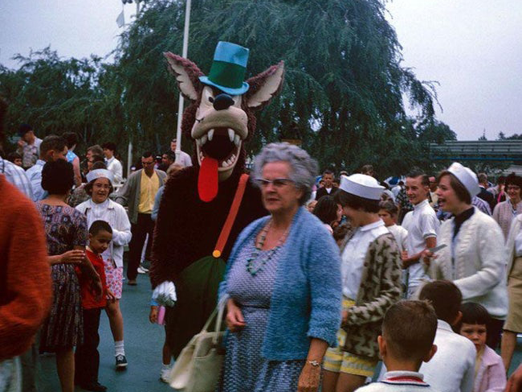 Grandma, watch out behind you! There used to be a time when Disney characters roamed the park freely, without designated areas to be confined to. This policy was obviously changed due to crowd control, but that sadly put an end to hilarious photo-ops like this one.