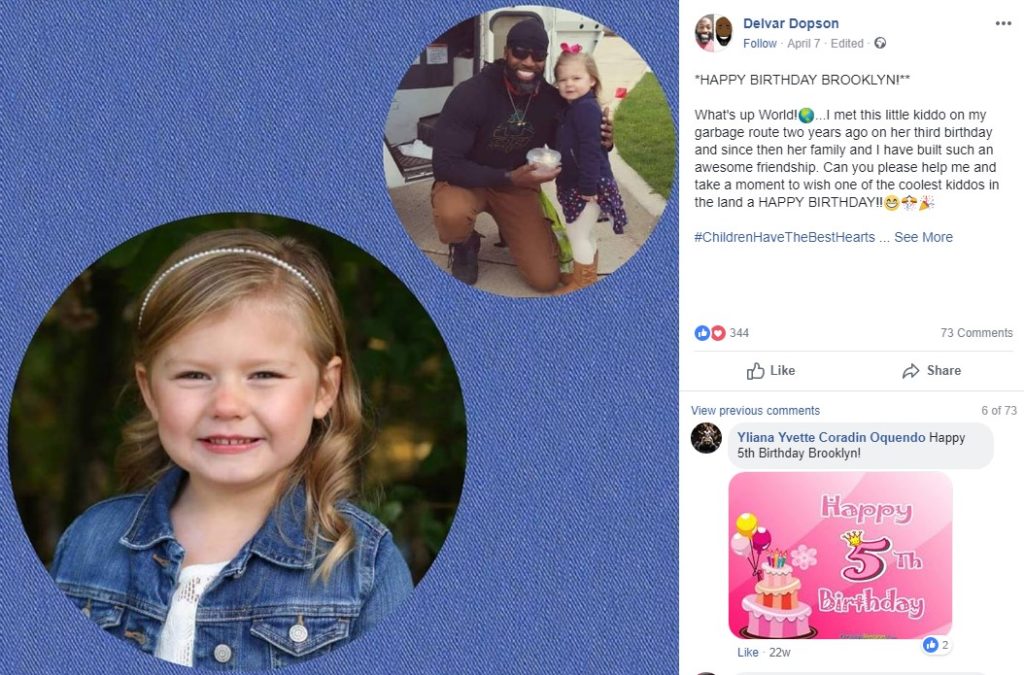 The tradition of Delvar and Brooklyn’s gift giving continued for two whole years, and the story has gone viral all around the world. Delvar has received letters from as far as Japan commending him for his kindness. Since working as a sanitation specialist in Bloomington, Delvar has moved on to greener pastures, but he misses Brooklyn every day.
