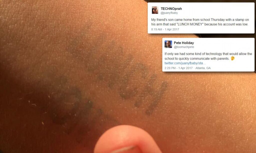 The young boy could pay for his food but the lunch lady saw his account being low on funds and decided to notify his parents. His father, Mark, decided to post a photo of this stamp online…