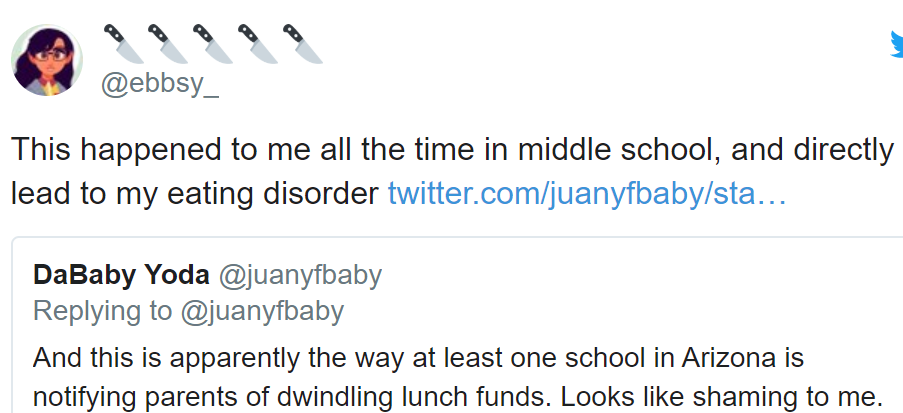Most commenters wrote on the subject based on their own experience, which was different than Cayden’s. However, one commenter said that she was treated the same way in Middle School, leading to an eating disorder.