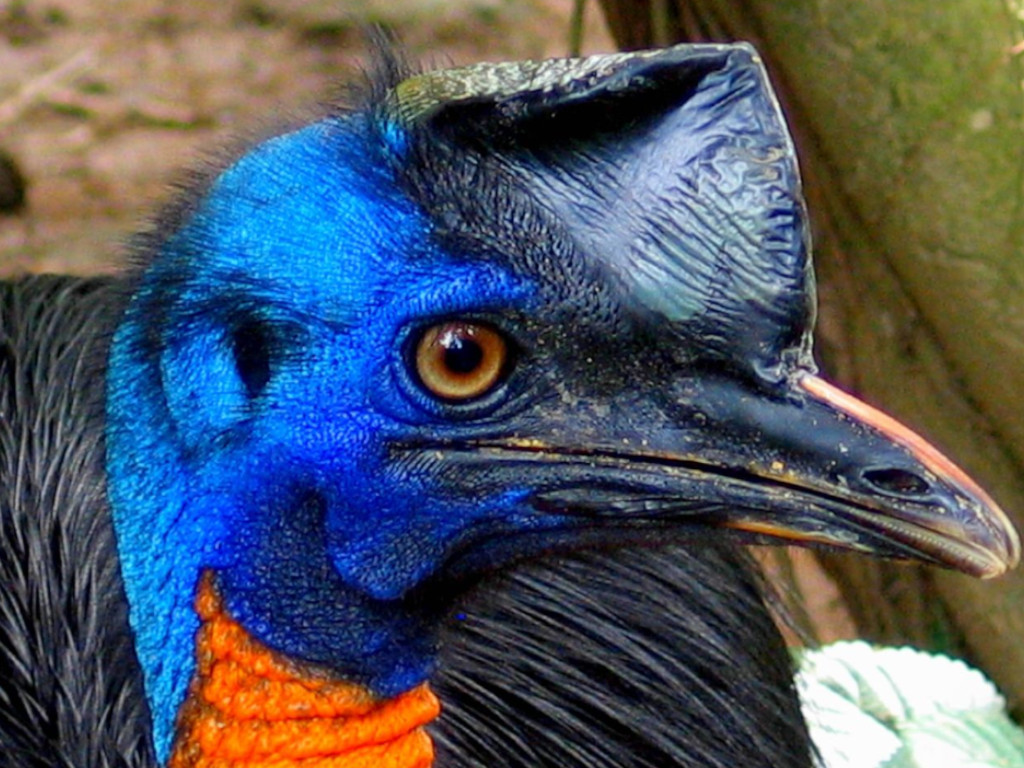 On the Australian continent and the northern part of the Indonesian islands live the Cassowaries, a type of bird that’s similar to an ostrich. It’s blue and red and has some seriously razor-sharp talons that it will use to rip you open so it can eat your insides.
