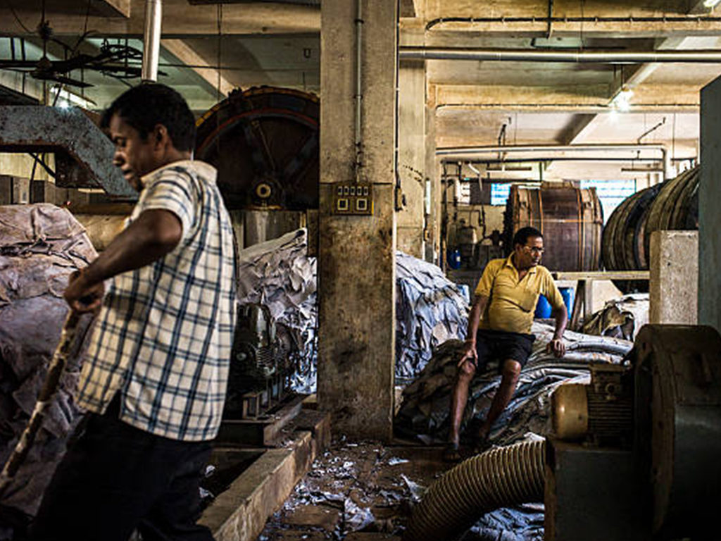 Leather tanners soak the animal skin full of meat and fat in water. Once the skin rots a bit, a knife is used to get rid of the hair. Sometimes, they also use urine to remove the hair. Then the skin is soaked in water and feces and kneaded to soften the skin for hours before it gets stretched and dried.