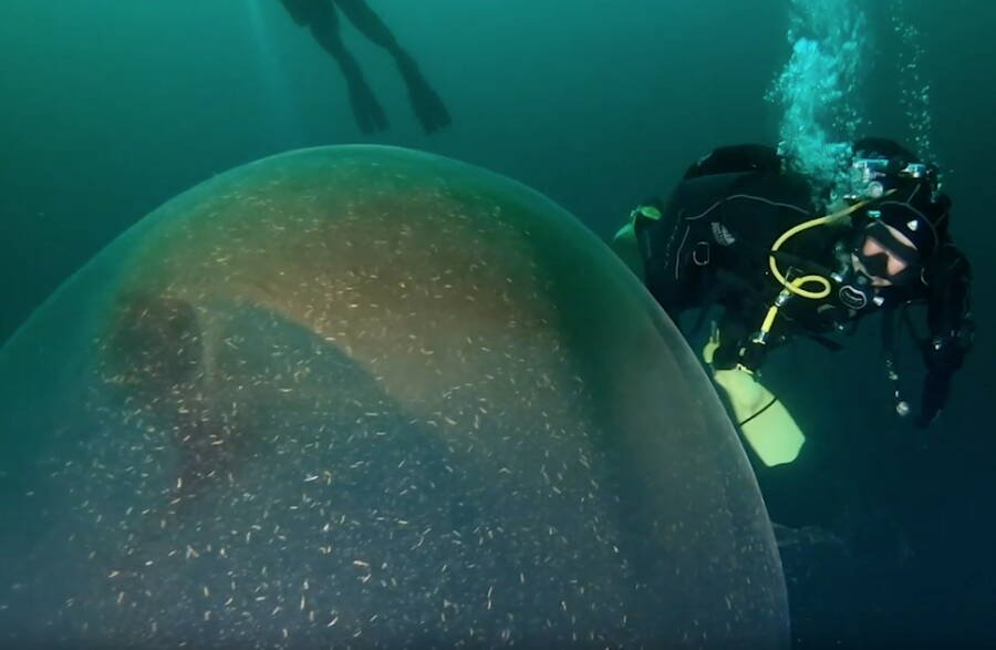 The southern shortfin squid lives in the North Atlantic Ocean and the Mediterranean Sea and their body (excluding the legs) can only reach between 8 and 16 inches long. If you were wondering how such a small squid can lay a giant sphere, then the answer is quite complicated.