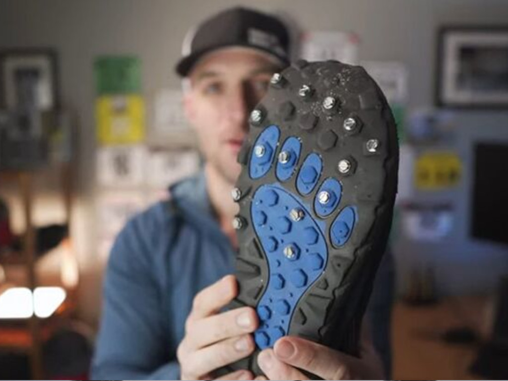 Add screws to the soles of your shoes. This will prevent you from slipping and sliding out on the driveway first thing in the morning and making a fool out of yourself in front of the neighbors or breaking a hip.