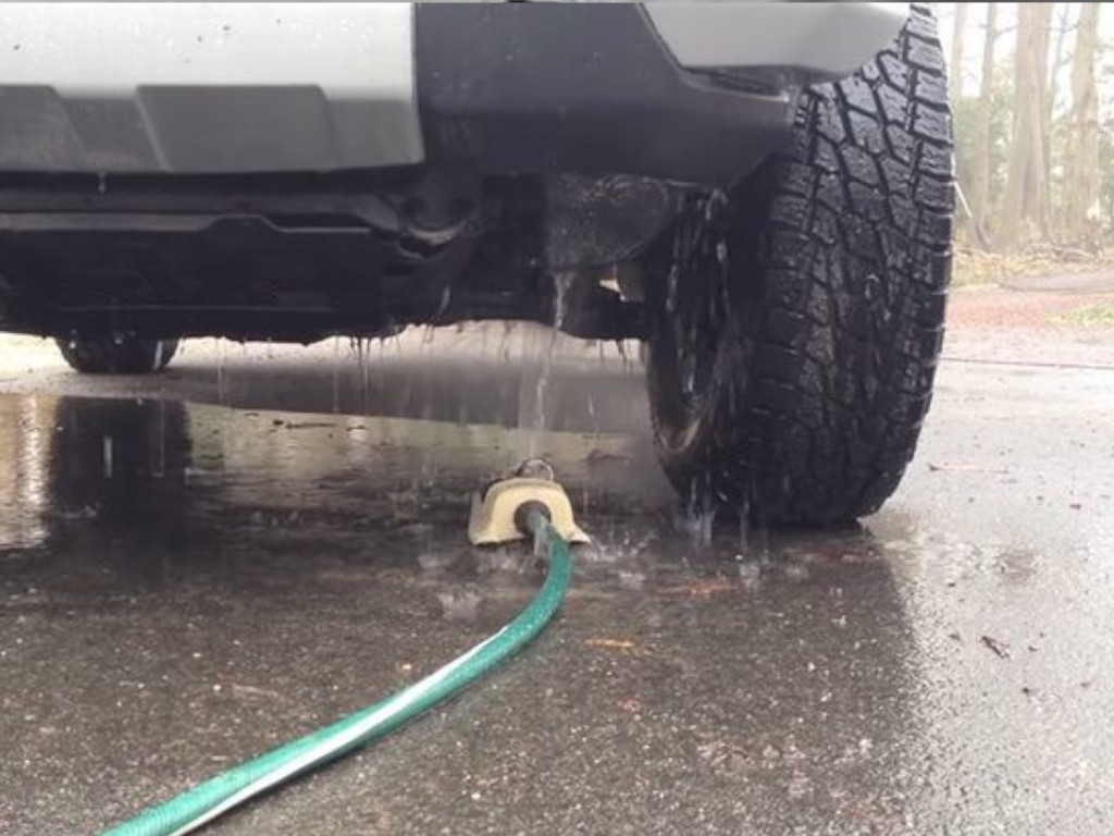 If the weather is so cold that your spit freezes, then don’t try this hack. But on those days where it’s not quite so chilly, place a sprinkler under your vehicle and let the water run for 30 minutes. This will clear out any debris or ice that’s trapped underneath.