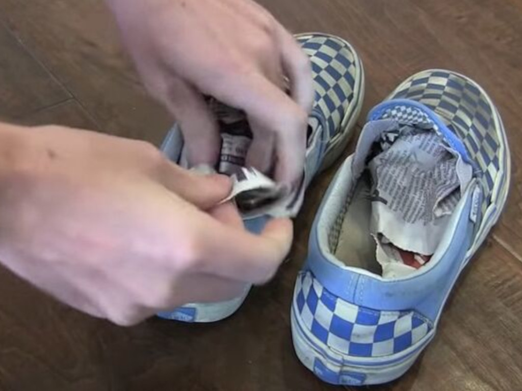 Not all shoes were designed to brave the winter weather conditions. Just ask anyone who has ever walked in snow or stepped in a puddle of dirty snow slush. If this happens to you and your shoes get wet, simply stick a bunch of newspaper inside the shoes when you get home. This will absorb the moisture and help your shoes get dry a lot quicker.