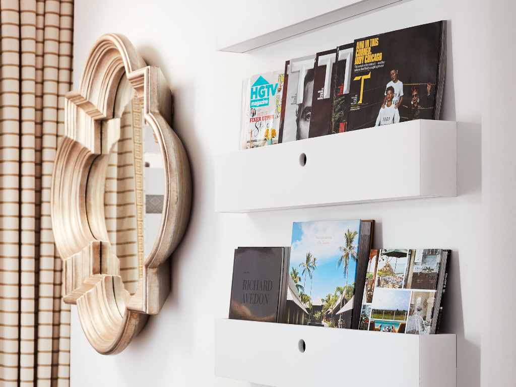 Add a couple of racks or holders to a wall in the living room. This will make the perfect home for all those magazines and books the family loves to read but they wind up putting down in all the wrong places like on the floor, coffee table or couch.