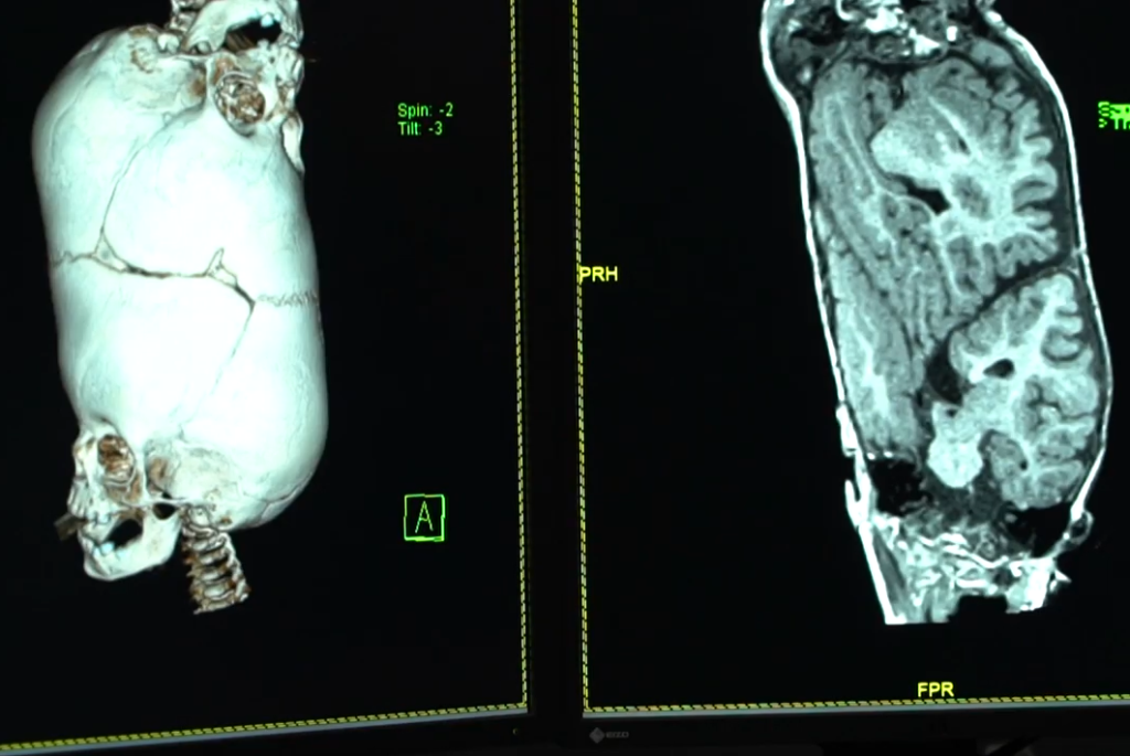 It was a challenging task to create two skulls from a tubular skull. Plus, they needed more skin to cover the skulls.