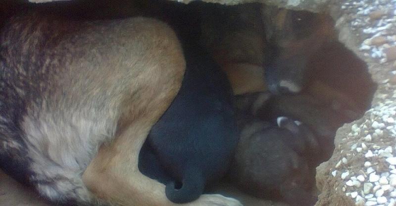 Turns out this dog was in fact protecting her babies! The stray momma had a little cave under the gravestone and had had her puppies there. Dimitra couldn’t believe what she was witnessing. This poor dog was just looking out for her babies and dug herself into somewhere she thought was safe. Dimitra knew she needed to help this family, and was prepared to do anything in her power to do just that. But more was to be uncovered.