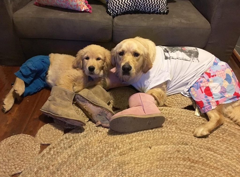 Lula is a great friend, teaching Benson how to chew their mom’s shoes. You can see how big Benson got, compared to the day when he could fit in a bag! Here they are on the beach in the next photo that looks so great we could use it as a wallpaper!