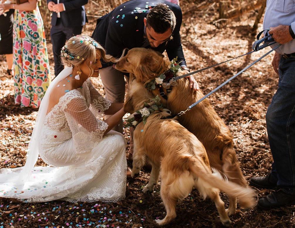 Lula and Benson became the ring bearers at their parents’ wedding. The two golden retrievers wore matching flowers and were happy to be next to their owners in their most important day of their lives.