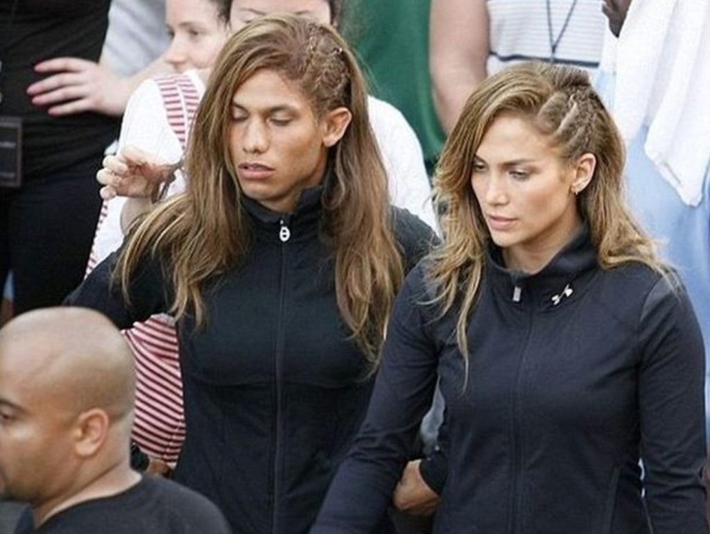 The fact that they’re both looking very similar, the man is dressed in matching jumpsuit, and has his hair braided is hilarious, but did you even realize it wasn’t J Lo in the adventure packed scenes?