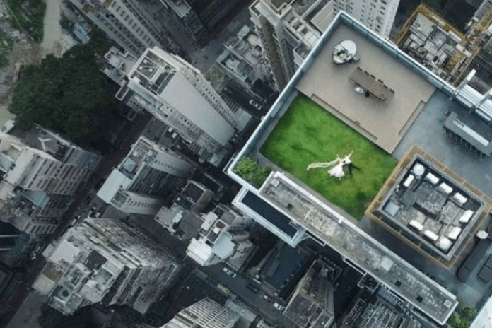 Every bride and groom try to find some way to make their wedding photos as unique as possible. This couple used a drone to take a photo of themselves on the rooftop of a tall building. We’re sure that these two will find many more creative uses for a drone.