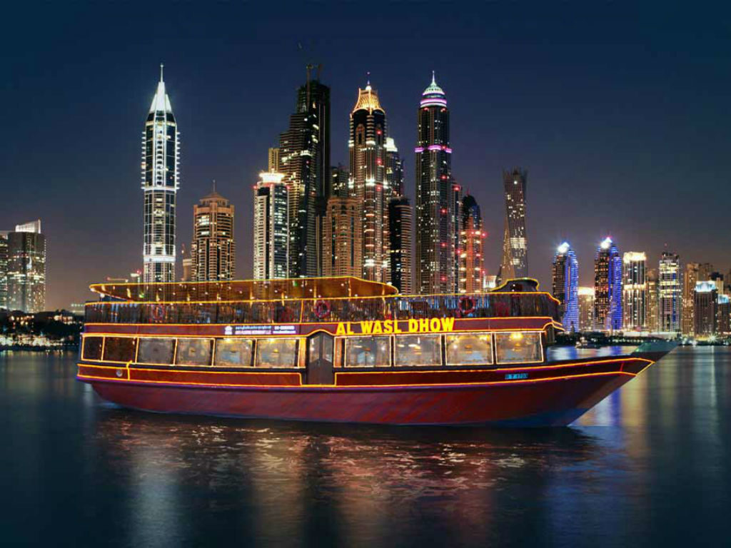 For something more low key but with the same jaw dropping views, these traditional Arabic dhow boats are the perfect way to dine while appreciating the Dubai Marina scenery. The lit up skyline in the background while you sail along the marina is an ideal date night during your Dubai vacation.