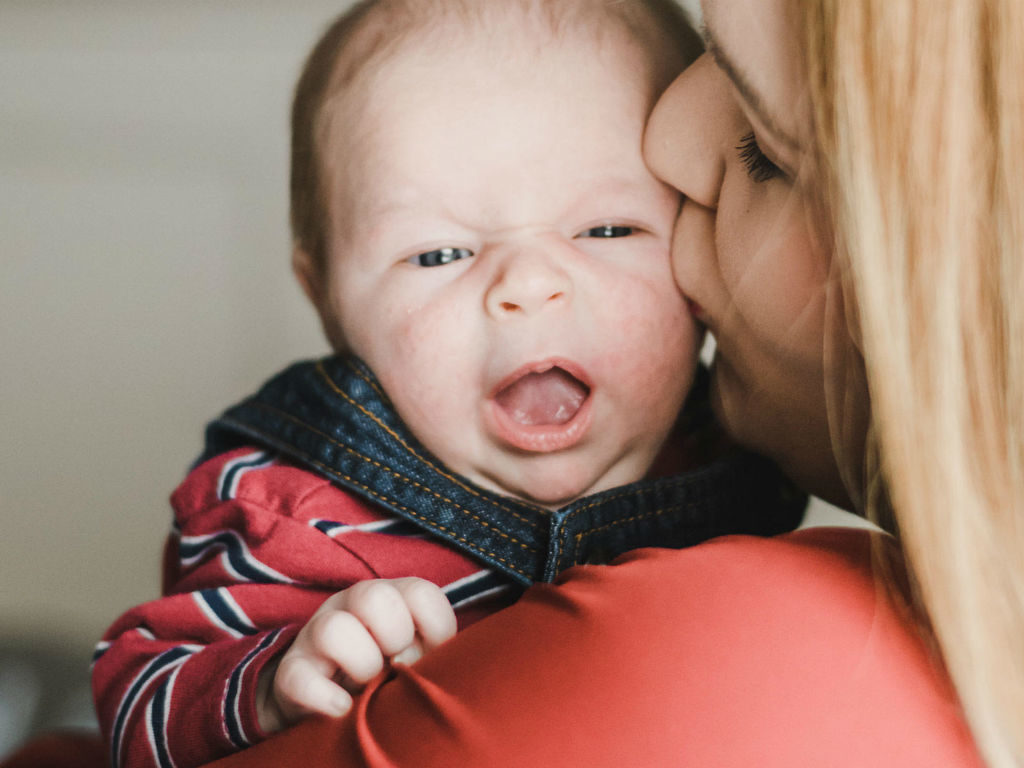If your baby is fussy or needs to burp, sit them on your lap and slowly move their upper body in a circle while holding their head. It helps those burps slip out much, much easier and makes them feel better.