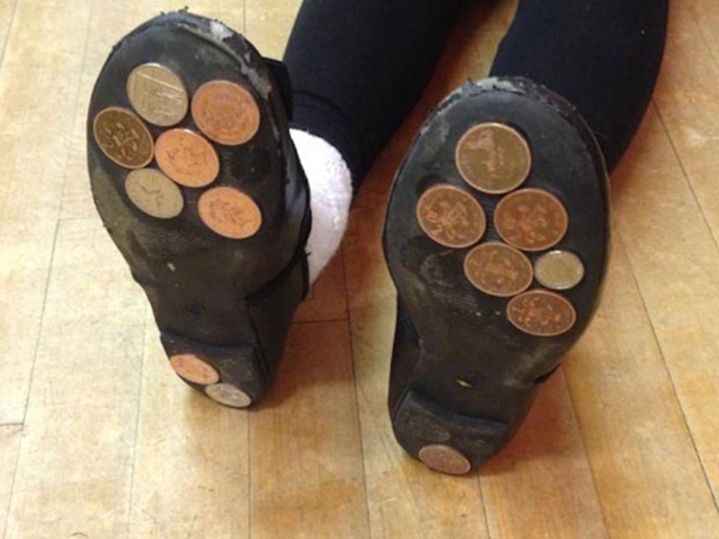 Why should any reasonable parent glue pennies to a perfectly good pair of your child’s shoes? As an easy makeshift replacement for tap shoes, of course! Most young toddlers won’t have enough of an interest in tap dancing to make buying an expensive pair of specialty shoes a viable option, but this easy life hack can result in hours of fun for your little one.