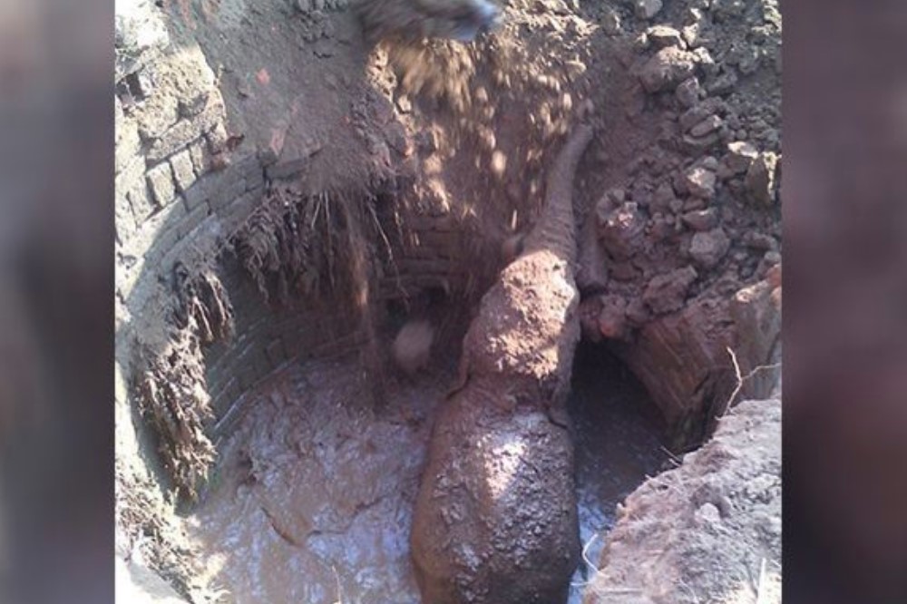 Quickly, they grabbed shovels and removed the ton of loose mud that had fallen into the hole, creating a slope down to the calf. With his mother waiting anxiously and aggressively in the wings, they had to act fast.