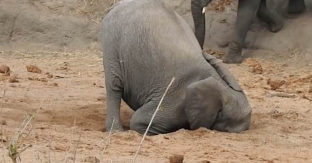 Tiwari noticed the massive hole in front of the animal. It was trying to dig, but because of its round and chubby feet, it struggled. But that didn’t stop the elephant from trying.