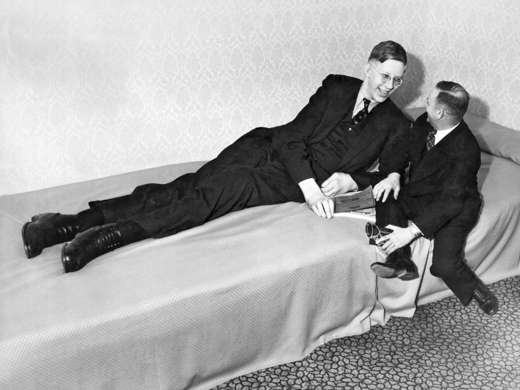 Robert Wadlow of Alton, Illinois, is said to be the tallest person in human history, and it’s easy to see why from this photo. Just look at how long his legs are. They probably had to put two beds together so he could sleep on it. He also dwarfed the average sized human sitting next to him. Wadlow was nicknamed the Giant of Illinois because he was 8-foot, 11-inches tall. Unfortunately, his lifespan wasn’t as long. He was born in 1918 but passed away in 1940.
