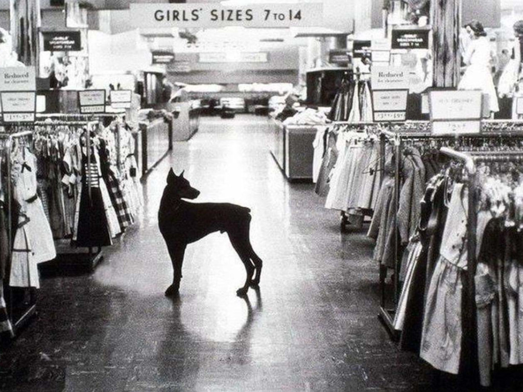 This 1954 photo shows that Macy’s hired ferocious looking dogs to roam around their store to keep an eye on things and ensure that no thieves tried to steal their merchandise. They were considered just as valuable as human security guards and even more so because dogs have a sense of hearing and smell that people lack. This gives them the ability to detect an intruder or intruders. It’s why Doberman Pinschers and German Shepherds were the breed of choice to look after their store.