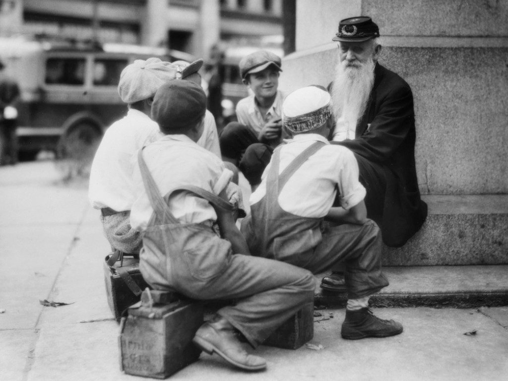 This photo taken in 1935 shows a group of young shoe shiners sitting on their stools around an elderly long bearded Civil War veteran. Shoe shiners were pretty much everywhere in the early 20th century. But while shoe shining was how these young men made a living, they didn’t seem to mind taking a break so they could hear everything about this man’s personal account of the American Civil War that lasted from April 12, 1861 to April 9, 1865.