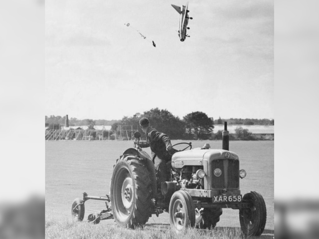 This young man, presumably a farmer, was on his tractor when he heard an odd noise. As he turned around, he noticed a pilot ejecting from an aircraft that was only moments away from nose diving into the ground. The photo was snapped seconds before disaster struck and the plane crashed. Luckily, the farmer wasn’t hurt and the pilot only suffered a few scrapes and bruises, but it could have been worse if he had crashed in a metropolitan area.