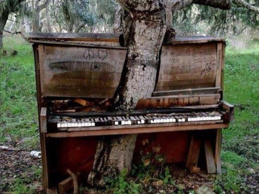 This photo of a tree growing through an old piano at California State University in Monterey, California, isn’t what it appears to be. The tree had always been there, but the old abandoned piano was cut in half and placed around the trunk. But who would go to so much trouble to create this illusion? That would be artist Jeff Mifflin. He wanted folks to imagine the sound the wind made through the trees whenever they saw this.