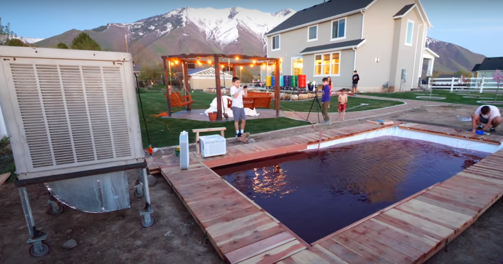 Mark got lucky because one of his neighbors had an old swamp cooler lying around in his garage. Mark used this device in order to keep the surface of the pool cool so that he could keep freezing more layers.