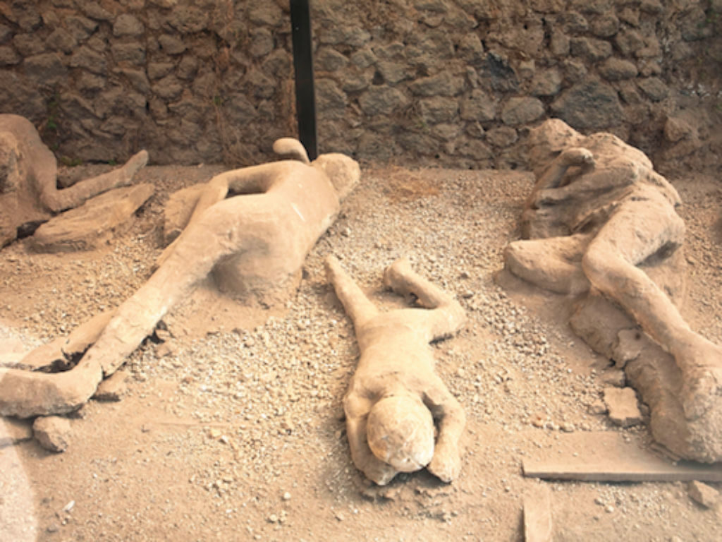 When archaeologists first began to dig away at Pompeii, they came across bodies that were encased in layers of hardened volcanic rock and ash. The archaeologists poured plaster into the cavities left by the bodies in the hardened ash, creating plaster casts and allowing us to get face to face with the people of Pompeii in their final moments.