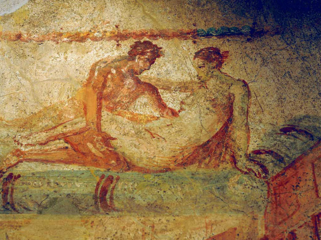 In ancient Pompeii, people were very open about sex. Paintings, sculptures and graffiti of sexual acts covered the city’s streets, bars and brothels. Sexuality was an expression of life and didn’t have the lewd connotations that modern religion gave it.