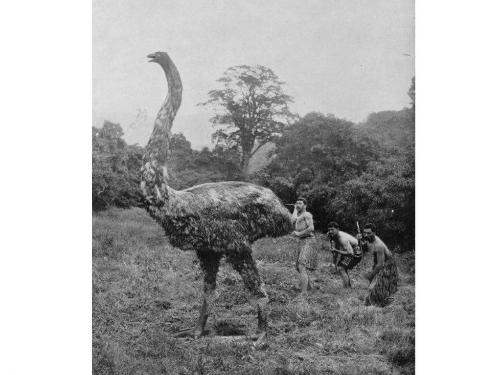 The Giant Moa was a large, flightless bird with a long neck that was native to New Zealand. It may well have been the tallest bird in history, but it died out in around 1500 as a result of human hunters. Other wildlife in the area would later not survive the arrival of European settlers who burned much of the countryside to create farmland.