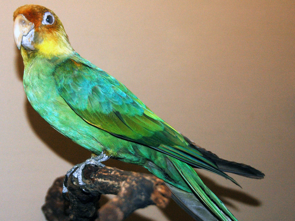 In spite of its name, the Carolina Parakeet was native to a wide area across the North American continent, which spanned New York, Kentucky, Colorado and the Gulf of Mexico. The bird was very pretty, so human demand for its feathers contributed to its decline, but deforestation of its natural habitat really didn’t help. The last Carolina Parakeet, named Incas, died in Cincinnati Zoo in 1918. Incidentally it lived in the same cage as Martha, the last Passenger Pigeon, before her death in 1914.