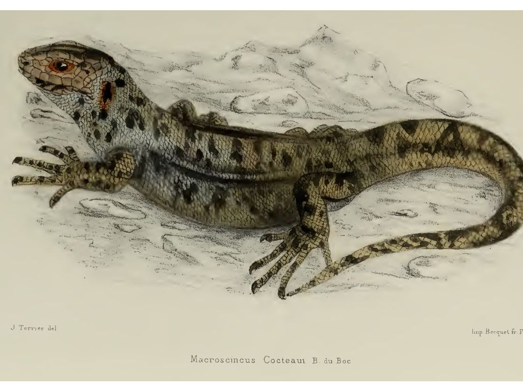 The Cape Verde Giant Skink once lived in (surprise surprise) Cape Verde, until its extinction some time before 1940. The lizard was killed off partially by drought and human demand for “skink oil,” but what really sunk the nail into its coffin was a period during which starving prisoners were kept on Cape Verde and ate the majority of the Giant Skink population to stay alive.