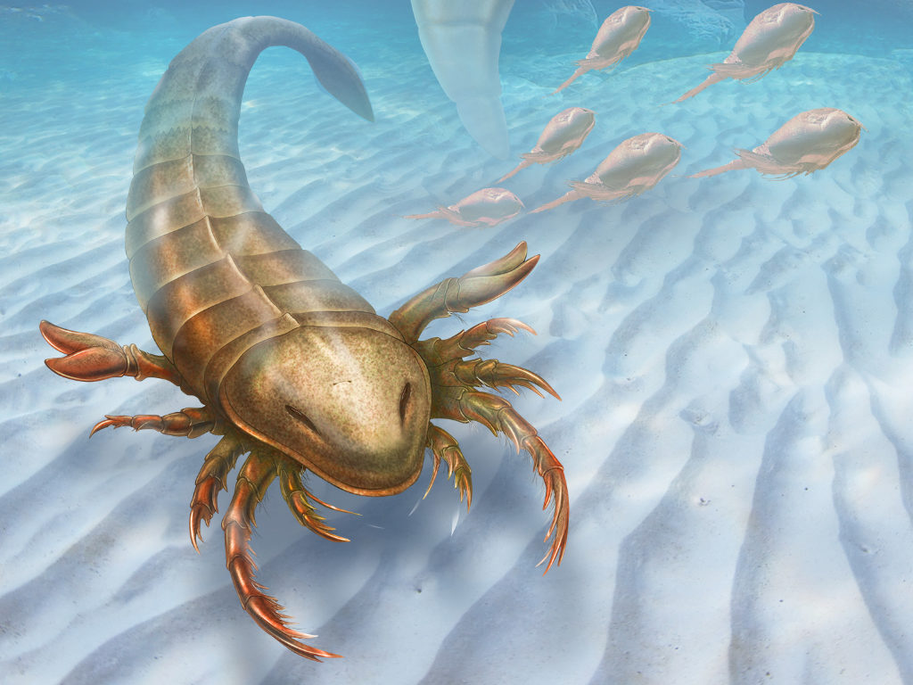 Also known as the sea scorpion, the Eurypterid existed between 250 and 400 million years ago. It was the largest arthropod to ever live – the biggest fossil that has ever been found is over 8 feet long – a lot larger than modern scorpions.