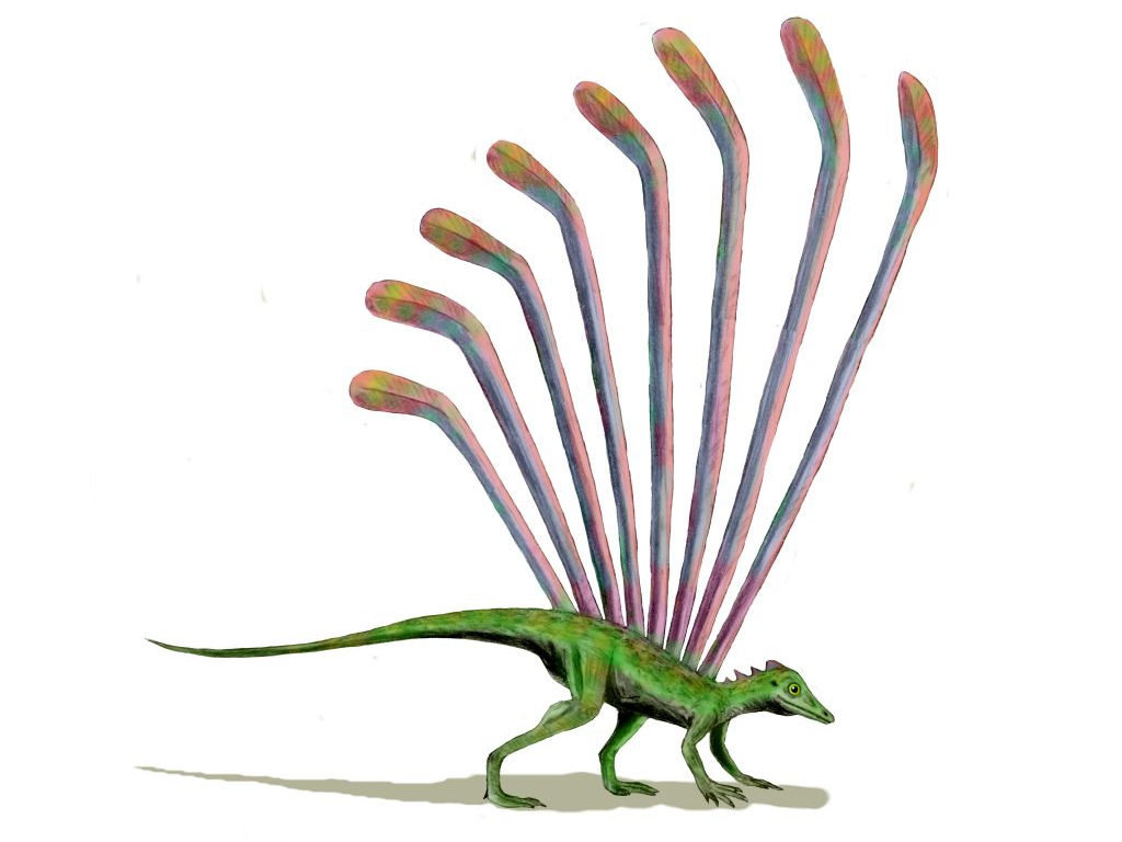 Longisquama had long fan-like ridges all along its back. Despite this looking a lot like the plumage of some modern birds, scientists believe that this is a coincidence, considering that it lived during the late Triassic period 235 million years ago, and birds wouldn’t evolve similar ridges until much later.