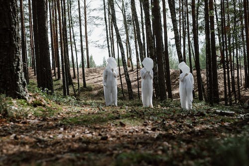 As she recounted later, there were two strange-looking men squatting among the bushes, a few feet away from the path, staring at her. They were dressed in what seemed like shabby white robes and had long, unkempt beards.