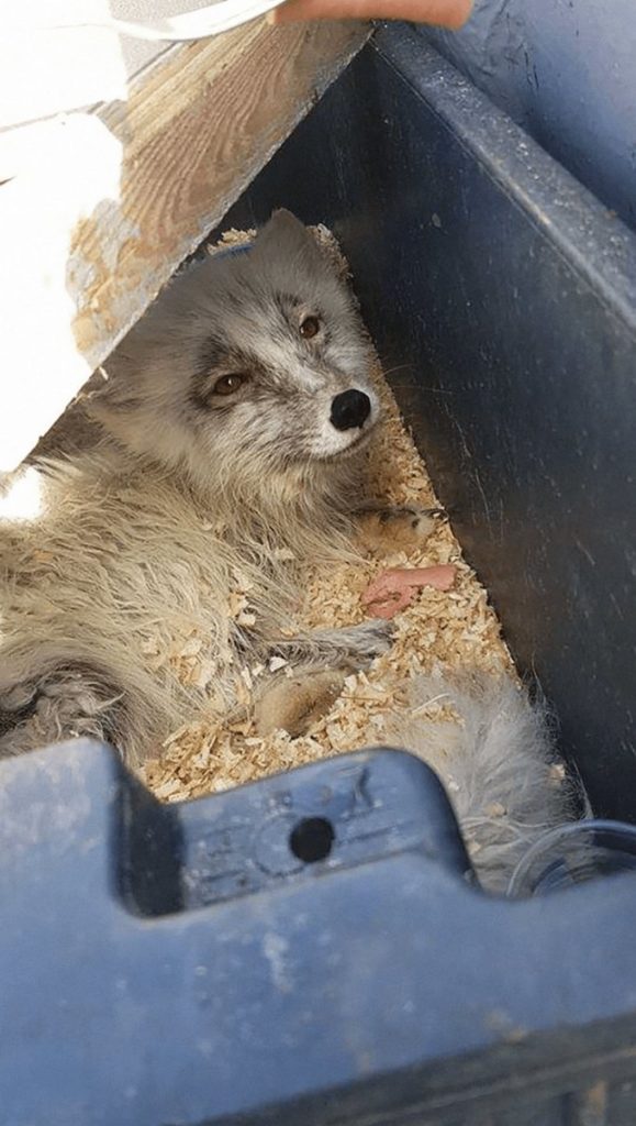 “Once we got him in his makeshift bed he fell fast asleep,” said Mallory. The Northern Swan then traveled to the small island community of William’s Harbour, where they docked and waited for the fox to wake up. Hours later, he seemed to be in much higher spirits. “We were able to feed and water him,” says Mallory. “We gave him a tin of Vienna sausages and a bowl of water.” It looked like it was time to set him free.