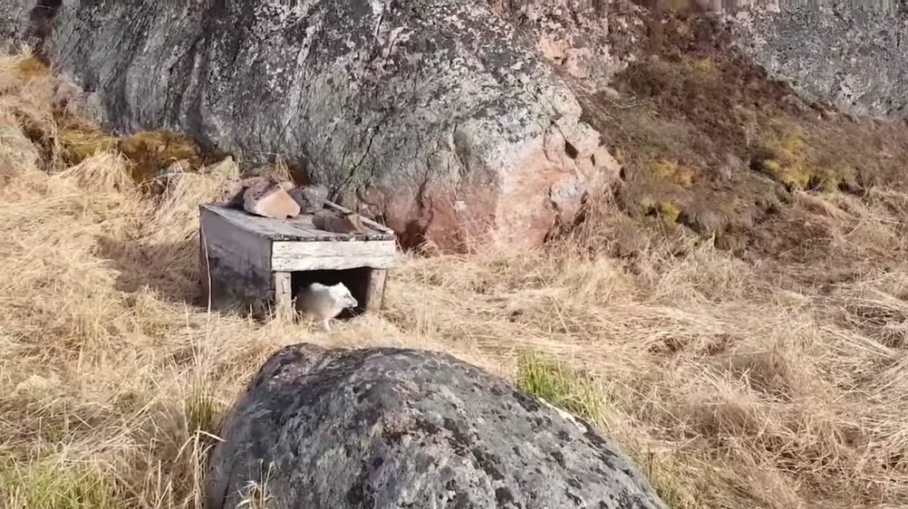 The fishermen scooped up the fox and took him to an area that used to house sled dogs. “We put him into one of the old dog houses on the island and gave him some space,” explains Mallory. After exploring his surroundings, the animal took off into the hills. But that was not the last the crew saw of him. “We can still see him from time to time, running around the island chasing small animals.”