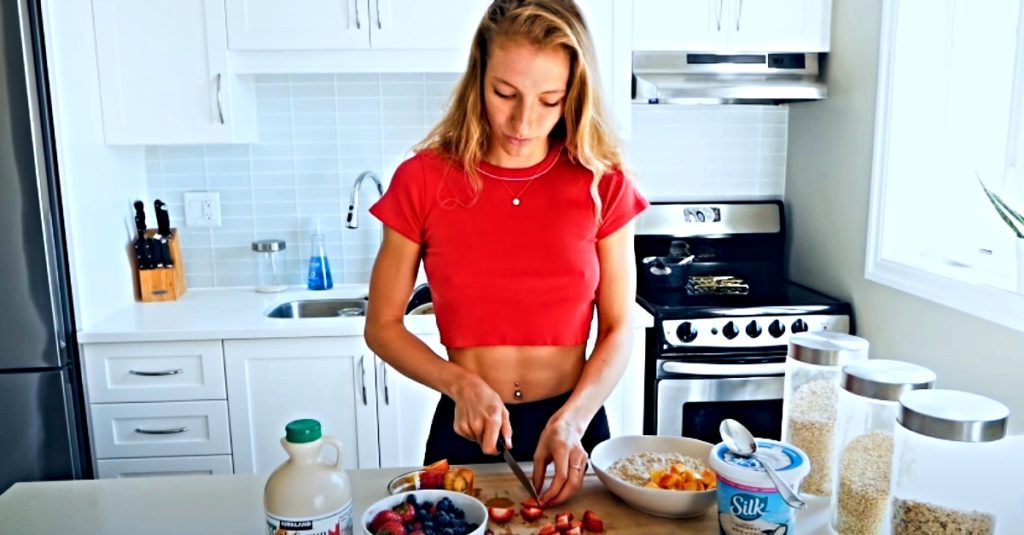 While plain oatmeal served with fruits like the lady in the photo is making is a very healthy breakfast option, flavored store bought instant oatmeal is not. It’s loaded with sugar and salt and should be avoided.