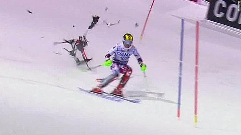 Here’s a drone that definitely didn’t want this skier to win. It made a desperate attempt to stop him. Instead of capturing footage, It tried to capture the skier. With spinning rotors and the weight of the drone, it would have definitely ruined this guy’s day if it had landed on him. Thankfully it was a close call rather than an emergency call.