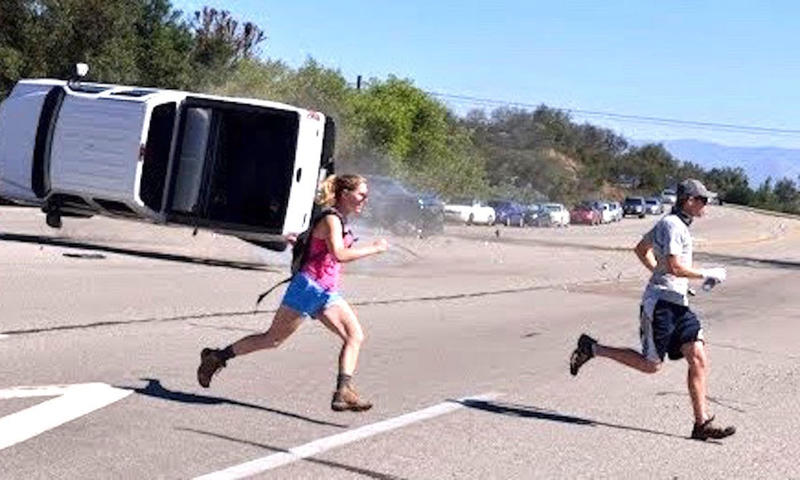 Now here’s an image. Someone must have been in a hurry to either get home or get to work, we’re not sure honestly. Maybe he was practicing to become a stunt driver for the next Fast and Furious Film? These joggers were lucky that they are athletic enough to outrun the rolling truck and avoid a nasty accident. The next person on our list picked an unfortunate place to sleep.